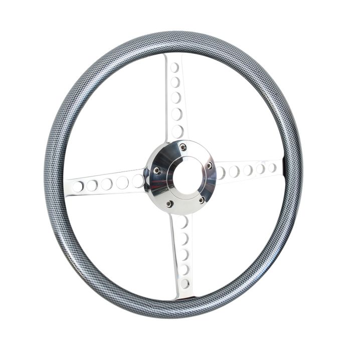 Forever Sharp ® - 14 Inch Polished Circle Roadster Lakester Steering Wheel With Carbon Fiber Half Wrap Grip (8001-CF)