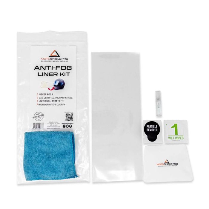 Never Fogs Never Fails!. MotoShield Pro Anti-Fog Liner keeps your visor, windshield and mirrors completely clear and fog free, regardless of the conditions. It is fully durable and fully effective, applied like a tint film and will last the lifetime of your visor and/or any glass surfaces within your race vehicle.