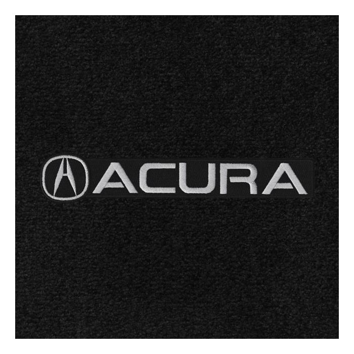 Customized 5PC Floor Mat Set for Acura TLX 2015 to 2018, with Silver Acura Logo and Lettering on Black Applique; one driver & one passenger side mat with logo, two rear mats with logo, one cargo mat with logo. Mats Emblem size 9.5” x 1.75”.